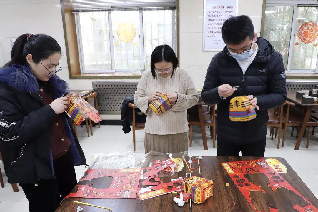 在DIY手工燈籠制作時(shí),大家各自拿著半成品材料對(duì)照參考說(shuō)明進(jìn)行粘貼制作。相互交流、相互指導(dǎo),通過(guò)一步步的搭建、固定、粘貼,最終象征著喜慶、團(tuán)圓的萌虎燈籠逐一呈現(xiàn)眼前。